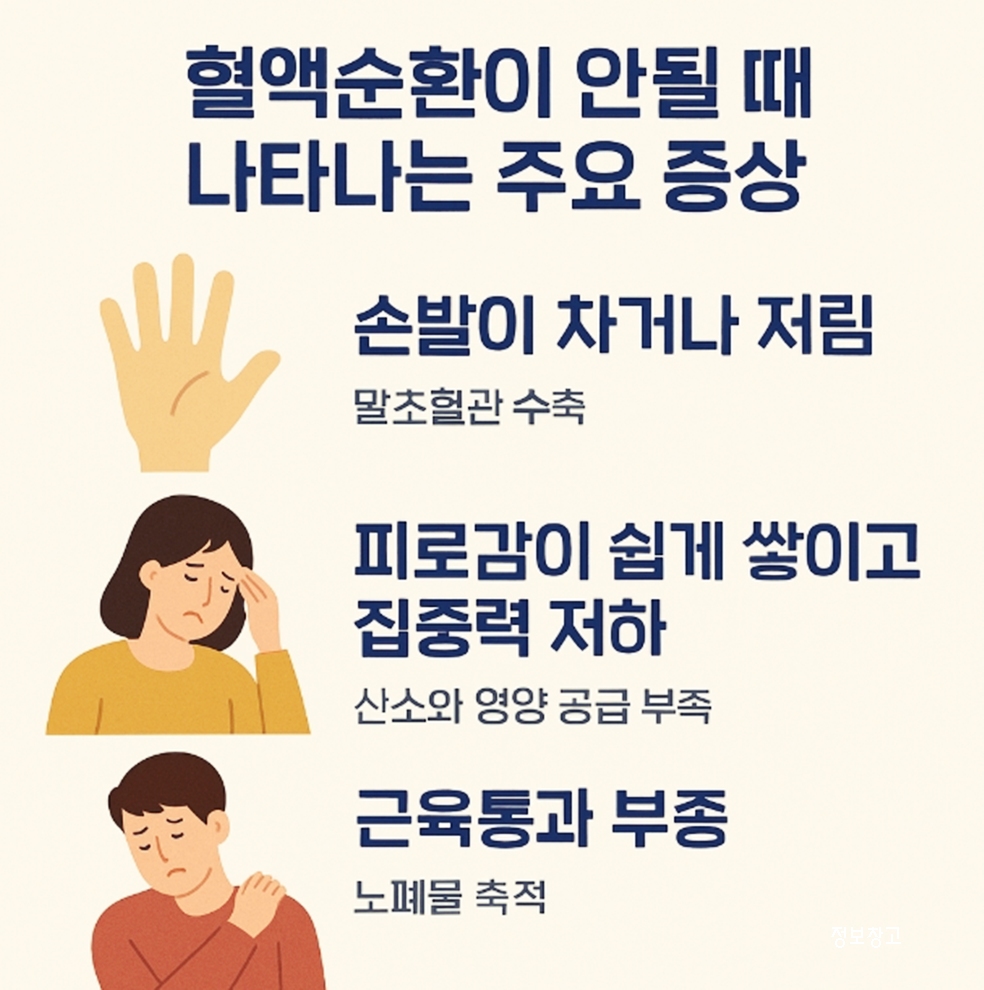 🔹 혈액순환이 안될 때 나타나는 주요 증상