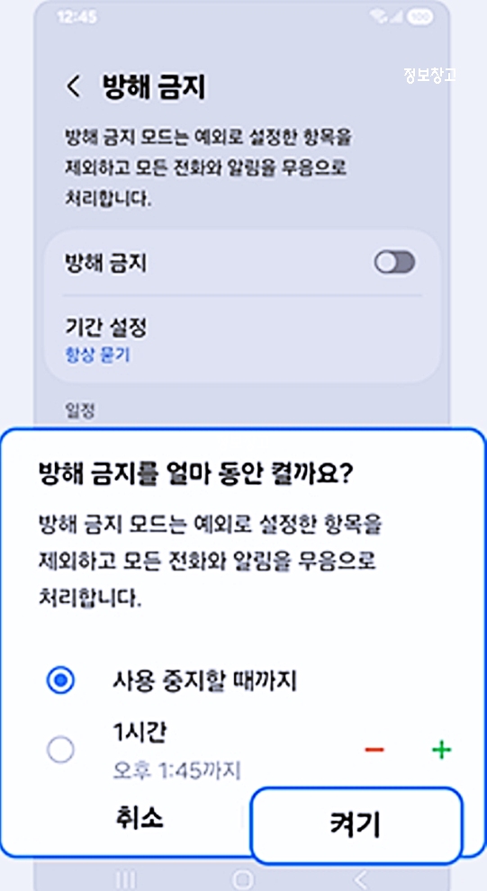 ※ 갤럭시에서는 방해 금지 모드가 켜져 있으면