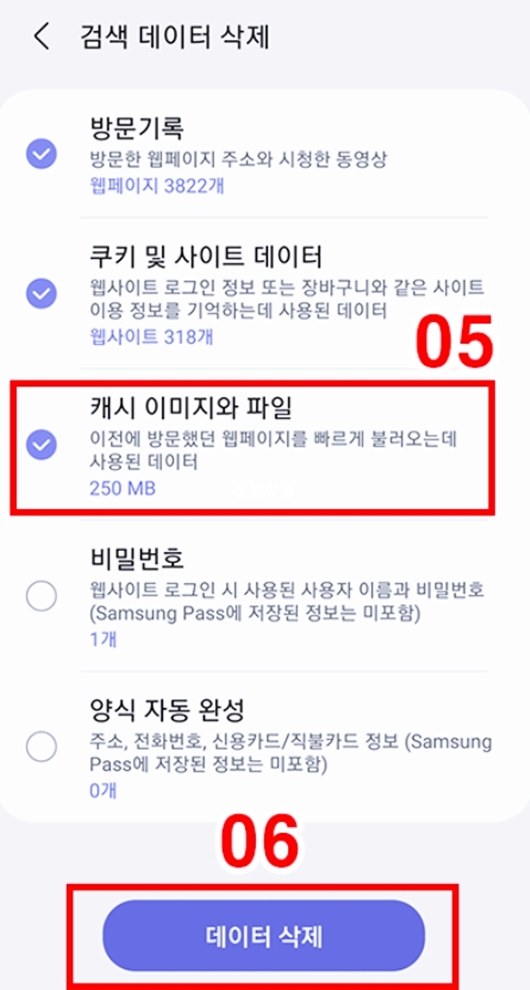 🔹 삼성 인터넷 캐시 삭제