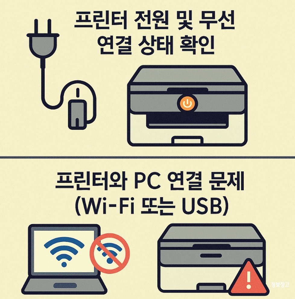 ① 프린터 전원·Wi-Fi 연결 확인
