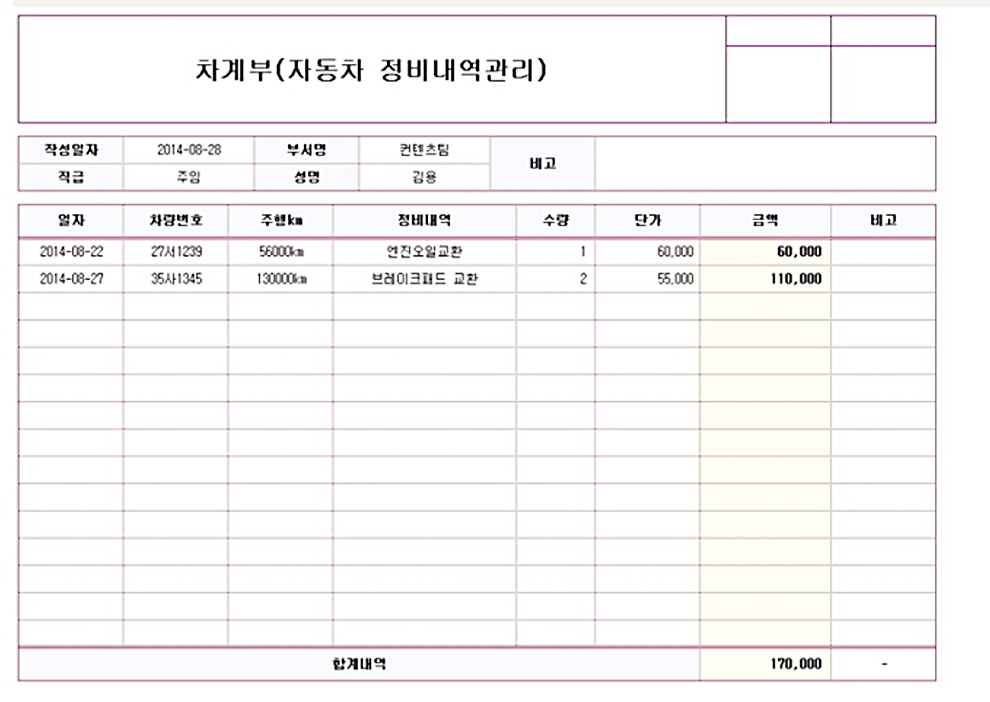 - 교환 후 주행거리 기록