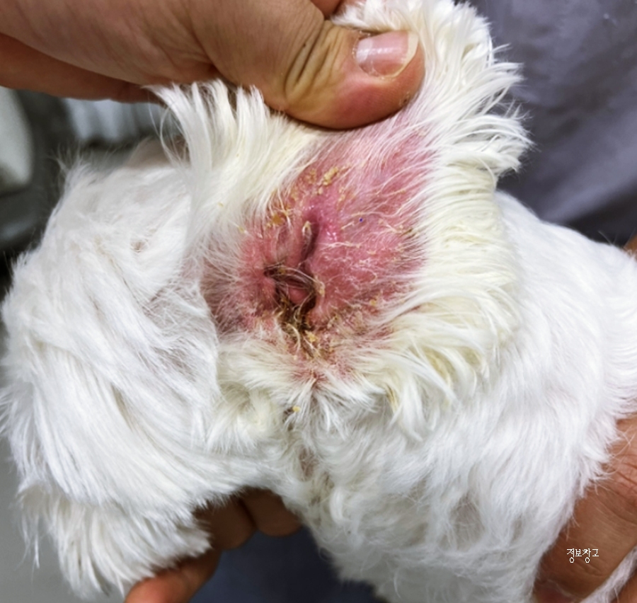 강아지 귀 바깥쪽(외이)에 염증이 생기는 질환입니다.